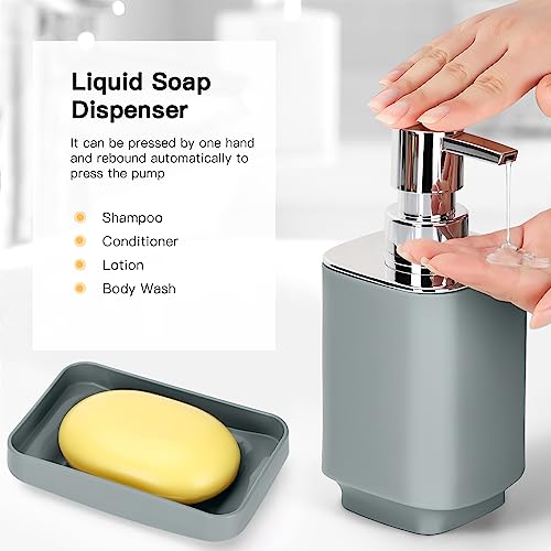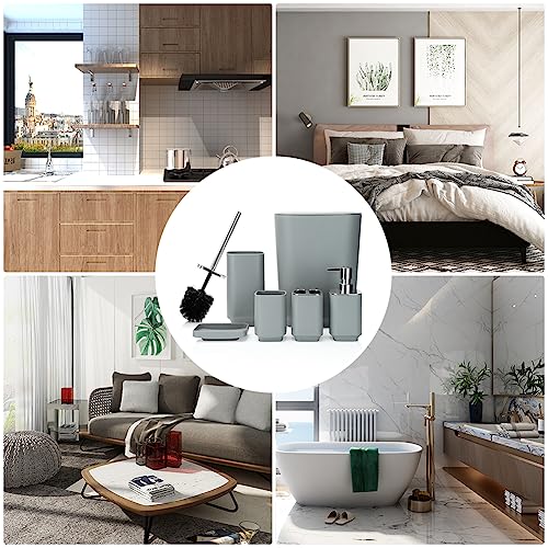 JOTOM 6 Pieces Bathroom Accessory Set Luxury Plastic Bathroom Accessories Set Trash Can Toilet Brush Set Toothbrush Holder Tumbler Soap Dish Soap Dispenser Bath Set Gift (Grey)