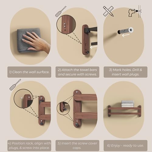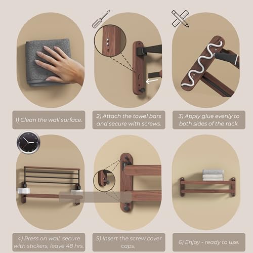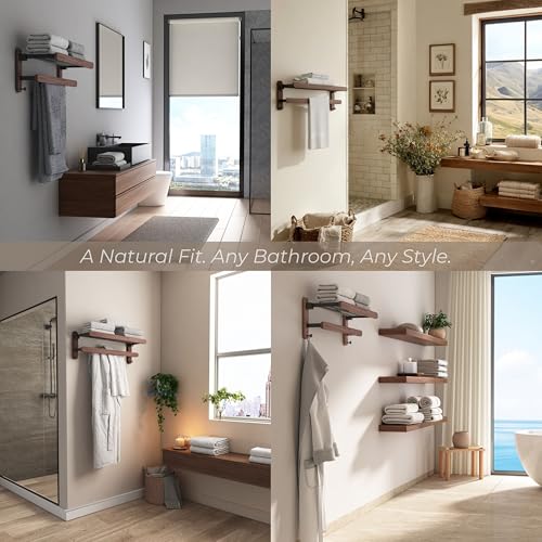 - 【PREMIUM WALNUT & MATTE BLACK DESIGN】- Crafted from 100% geniune FAS-grade North American black walnut with matte black aluminium rails, this wall mounted towel rack adds warmth and minimalist elegance – a premium alternative to ordinary stainless steel towel rails.