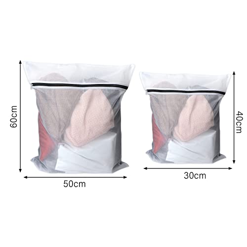 Juliyeh 2 PCS Mesh Laundry Bags, 60x50cm/40x30cm Laundry Bags for Washing Machine Reusable and Durable Mesh Wash Bags for Laundry Delicates Blouse, Hosiery, Lingerie and Baby Clothes(L+M, White)