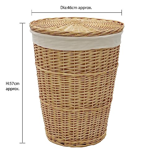 JVL Hand Woven Acacia Round Laundry Willow Basket with Lid, Honey Finish