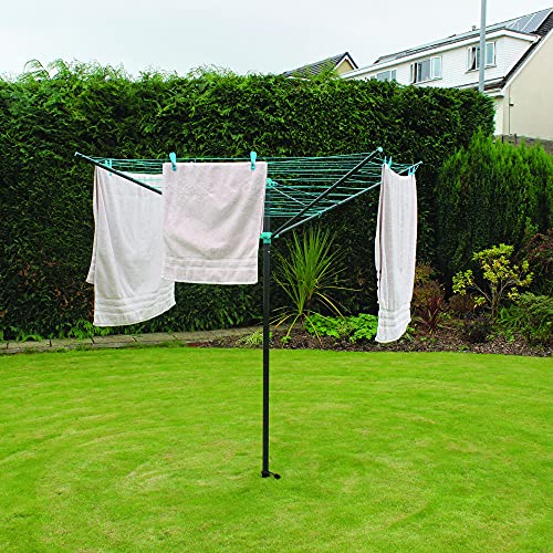JVL Robust Adjustable Aluminium Four-Arm Rotary Clothes Airer Washing, 40M, Grey, Large