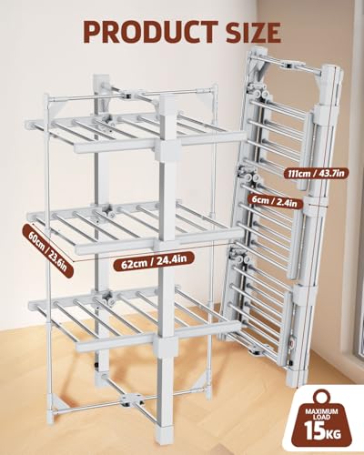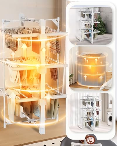- POWERFUL 3-TIER FOR QUICK DRYING: Our electric clothes dryer boasts a 3-tier construction with a generous drying space (24 rails) capacity, ample for drying your daily laundry. One-button switch, Maintains a steady 45°C-55°C for quick drying without damaging fabrics. Ideal for everyday laundry drying indoors during winter or rainy days.
