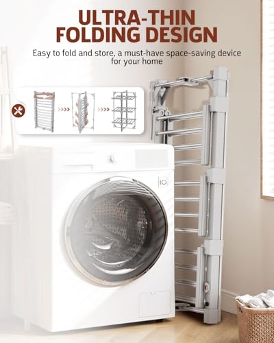 - MULTI-USE FUNCTIONALITY: More than just a dryer rack heated system, this versatile solution doubles as a temporary clothes hanger or storage rack. Use it in bedrooms, bathrooms, utility rooms, or on enclosed balconies. This electric airer clothes dryer is the perfect solution for drying your clothes, towels, shirts, shoes, sheets, and more when you need them urgently.