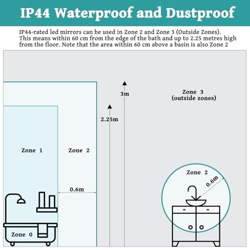• Quality & Reliable Delivery: LED bathroom mirrors adhere to UKCA and IP44 standards, ensuring normal operation in steamy, damp environments. Each mirror is securely packed in a reinforced cardboard box to ensure it arrives at your home in perfect condition