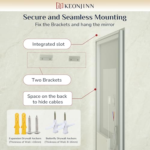 - 【Easy Installation】Effortless french cleat installation ensures a secure, level hang in minutes. Hide the cord behind the mirror for a clean look, and enjoy flexible power options with a long cord for plug-in use or direct hardwiring.