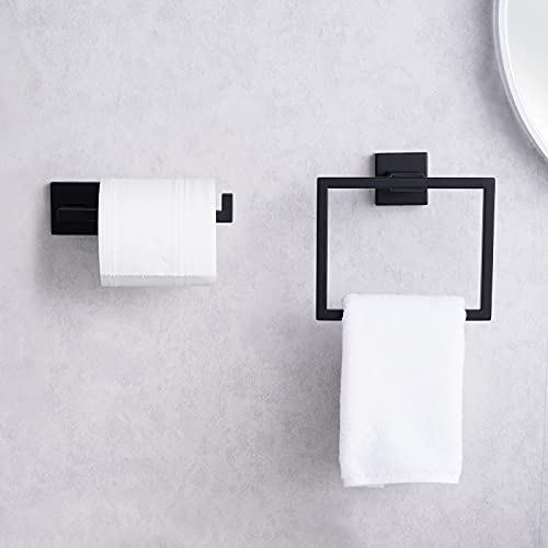 KES Black Toilet Roll Holder and Towel Ring Set Bathroom Accessory Set 2 Pieces SUS304 Stainless Steel Wall Mounted, LA225BK-22