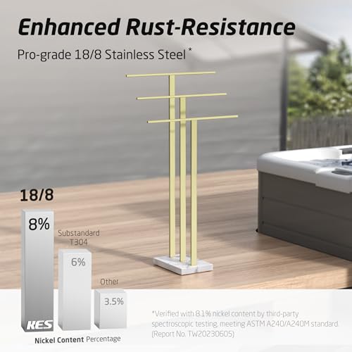 - 3 T-bars Design – Holds A Family's Towels: KES freestanding towel rail for bathroom has 3 tall bars to hold more towels without touching the floor. The tallest bar (36"/91cm) fits bath sheets. The middle bar (32"/81cm) fits bath towels. The shortest bar (28"/71cm) fits hand towels