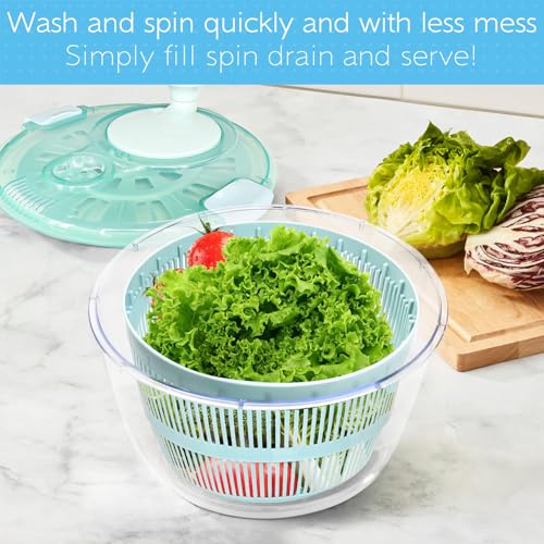 - 【EASY TO USE】: Includes a clear outer bowl, a white inner removable strainer basket, a lockable lid, and a spinning mechanism that when initiated causes the inside strainer to rotate rapidly.