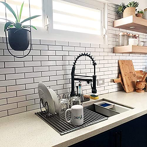 - KOKSI Roll up Sink Drying Rack and Spacing-saving Dish Drying Mat: This dish drainer can roll up and go in a drawer quickly when not in use. Works great and keeps the kitchen sink area looking neat. You can roll up this over the sink dish drying rack as much as you like during using it and for the pipes also can be removable