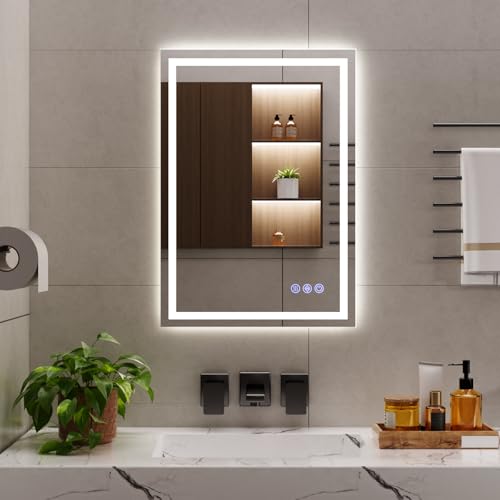 • Dimmable & 3 Color Temperature: The brightness of the light up bathroom mirror is adjustable. Short press the light button is to switch the light on/off, long press the switch is to adjust the brightness. 3 color temperatures are available; warm light (3000 K); natural light (4000 K); white light (6000 K) to create different atmosphere. And with defogging function and intelligent memory function, to meet the daily needs