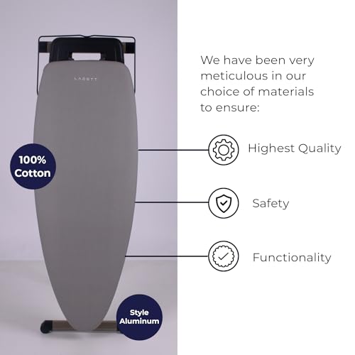 - Lightweight & Sturdy: The full-size LACETT ironing board with aluminum legs is not only sturdy but also exceptionally lightweight for easy maneuverability and ease of use during your ironing sessions; The LACETT Aluminum Ironing Board is designed for durability, supporting up to 40 kg for stability during heavy ironing