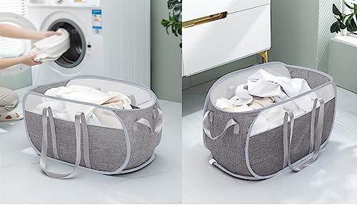 Large Collapsible Laundry Basket Folding Washing Basket Pop Up Foldable Laundry Hamper Space Saving Dirty Clothes Storage Basket Grey