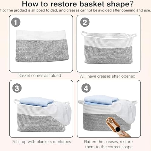 - 【Note】Due to the manual weaving process, please allow for a 2-3cm difference. The rope basket comes in folded. It will return to its best shape if filling it up with blankets for 2-3 days. Or fast smoothing the creases by ironing it