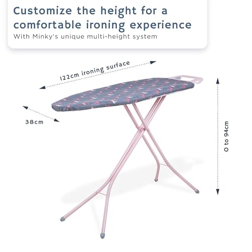 - Stylish Design – With a robust 4 leg frame, powder coated pink surface and a unique flamingo patterned grey and pink cover, add style to your kitchen with Minky.