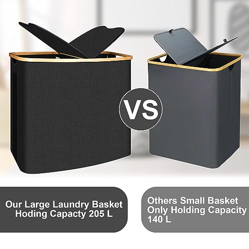 Large Laundry Hamper with Lid 205L,Collapsible 2-Section Dirty Clothes Basket Organizer for Bathroom, Bedroom & Laundry Room – Waterproof, Easy Sort, Foldable Storage Solution