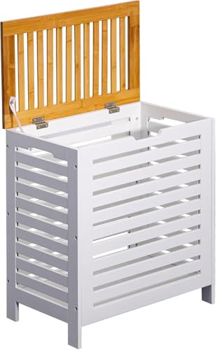 - 【Easy to Keep Clean】This laundry bin is made of painted MDF. The smooth and glossy finish inside and outside are easily wiped clean with damp cloth. Dimensions: H55 x W50 x D30.5cm.