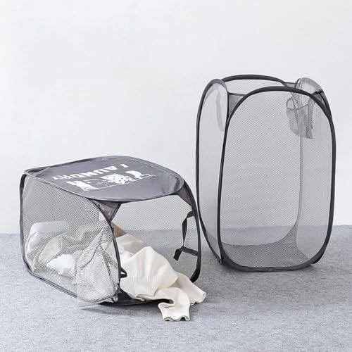 Laundry Basket, Pack Foldable Laundry Hamper Pop Up with Durable Handles, Portable Mesh Washing Laundry Bag with Handle Great for Home Kids Room College Dorm Travel(Black)