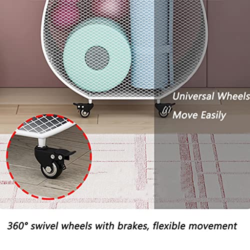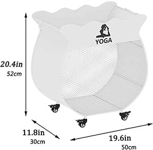 Laundry Basket Shelf Rolling Utility Storage Cart, Metal Laundry Basket with Wheels, Heavy Duty Mesh Wire Laundry Cart, Yoga Mat Storage Basket Clothes Hamper Bin Toy Organizer Holder (Color (White La