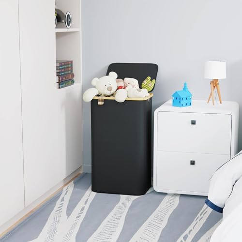 - Large Capacity yet Space-Saving: Measures 17-1/2” x 13-1/4” x 29”, 29-gallon (110L) capacity. Tall basket hold tons of clothing while taking up little floor space. Bamboo matching cloth design is a perfect addon to your bedroom, laundry room, bathroom, college dorm, or kid room's decor.