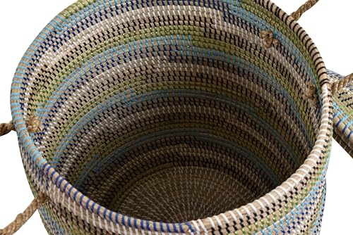 Laundry Basket with Lid Decorative Basket Storage Box All Purpose Basket Natural Seagrass with Colourful Coils (Green Mix)
