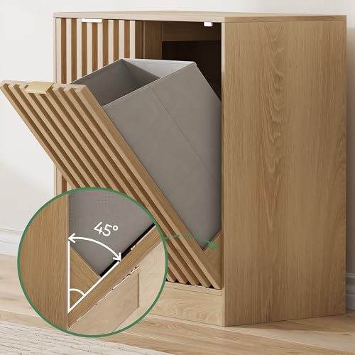 - This innovative laundry cabinet features a convenient tilt-out basket that maximises your storage efficiency while keeping your space organised.