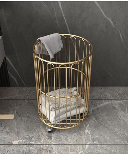 Laundry Hamper Laundry Basket, Large Laundry Hamper, Wire Laundry Basket with Wheels, Metal Rolling Laundry Hampe for Bedroom, Bathroom (Color : Gold) (Gold)