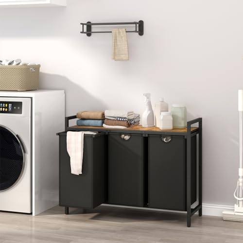 • Sturdy & Stable: Our laundry sorter is made with a sturdy metal frame and particle board, which gives the laundry hamper good stability