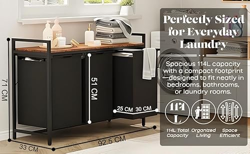 - Built-in Shelf & High Stability: A laundry basket 3 compartments with a built-in shelf and high stability combines practicality and durability for an efficient laundry organization system. The built-in shelf provides additional storage space, allowing you to store laundry essentials like detergents, fabric softeners, or even folding supplies.