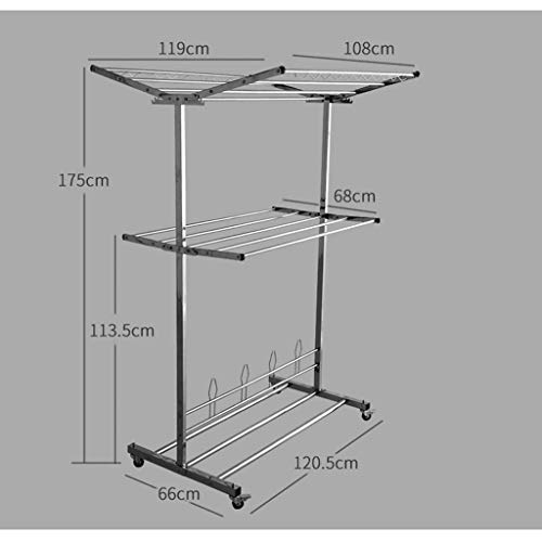 Laundry Rack, Folding Airer Dryer Wavy Line Wind Hook Stainless Steel Indoor Household Quilt Drying Racks No Need To Install with Wheels And 3 Shelves