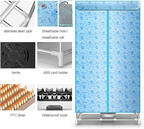 LBLFEBD 2 layer Electric Heated Clothes Airer Dryer Rack,Warm Air Drying Wardrobe,Dries Using Hot Air Fan,180 minute timer,Soon Heated Clothes Drying Pod Cabinet, Load 20KG,1000W