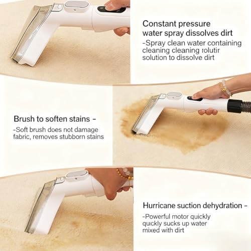 - 【Powerful Motor & Suction】: Equipped with a robust 600W motor and 16KPa strong suction to effectively remove tough stains and deep-seated dirt. Ideal for cleaning carpets, sofas, and car interiors with ease.
