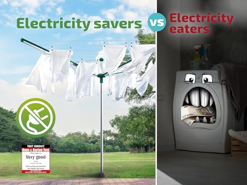- Large drying surface – With its 40 m of line space, this rotary airer can accommodate full loads from 4 washing loads as well as large items such as sheets