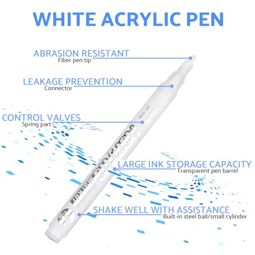 - 【Dynamic Creativity】: The Leogony 7PCS 2mm white marker pen set offers a permanent waterproof solution to your creative needs. Each marker is filled with a quick-drying acrylic paint, providing vibrant and long-lasting marks on a multitude of surfaces.