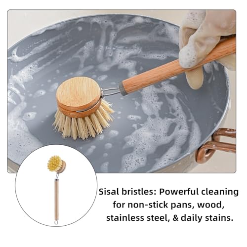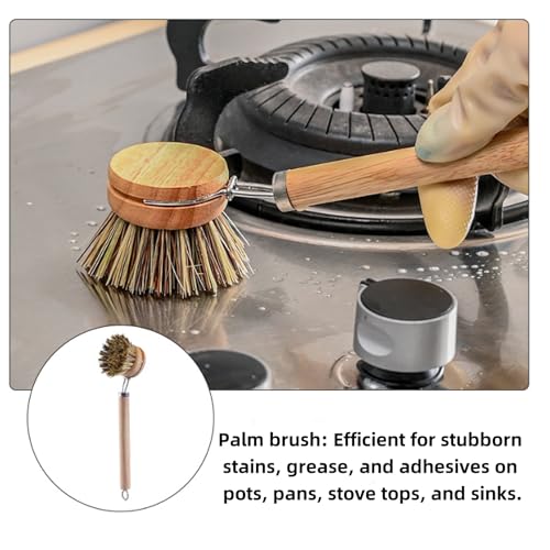 - Eco-Friendly Choice: Our wooden dish brush set is crafted from natural materials like wood, sisal, and palmyra, ensuring a smaller carbon footprint and less waste for a more sustainable kitchen.