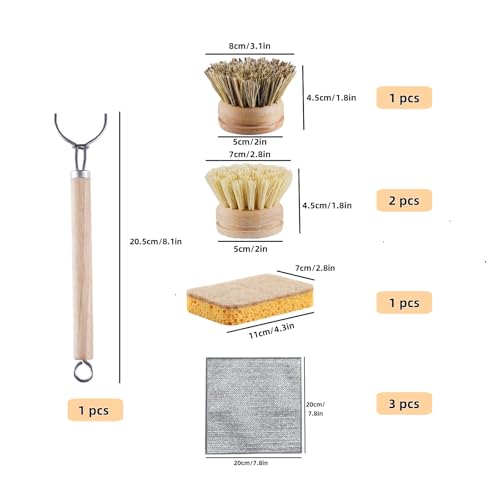 - What’s Included: The set comes with 2 sisal brush heads, 1 coconut palm brush head, 1 wooden handle, 1 sisal wood pulp cotton dish sponge, and 3 dishcloths—everything you need for daily cleaning tasks. Unlike traditional cleaning tools that wear out quickly and end up in the trash, our eco-friendly design lets you replace just the brush head, saving you money and reducing waste. Perfect for washing dishes, cleaning cups, and more.