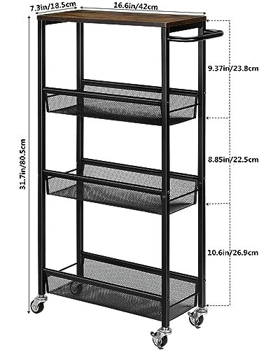 - MADE FOR TIGHT SPACES: This kitchen storage trolley with wheels is 7.3''W, allows you to place in those tight corners of your home, and has metal handles on the side to move the cart anywhere.