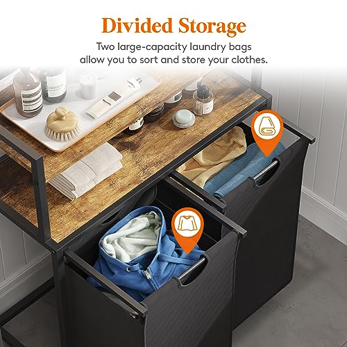Lifewit Laundry Hamper, 95L Pull Out Laundry Basket with Large Top Shelf, 2 Removable Bags, Black