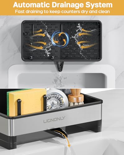 - Small Volume & Saving Space: Sponge holder for kitchen sink is only 9.7"L*4.9"W *10.2"H, suitable for kitchens with limited space, it can be used to store detergent bottle, sponges, brushes, towel and sink plugs, etc. LIONONLY kitchen sink organizer will give you a neat and clean kitchen.