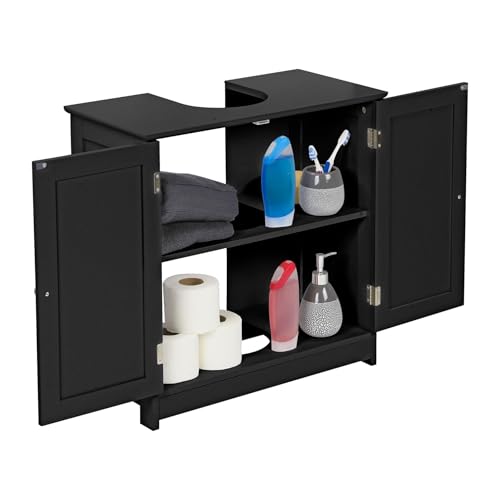 Livhome Under Sink Cabinet, Free-Standing Wooden Bathroom Storage Cabinet, 30D x 60W x 60H cm Bathroom Sink Cabinet, Compact Bathroom Furniture for Under Sink Storage Organization (Black)
