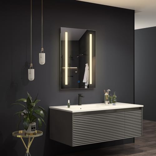 LUMIRRORS® Bathroom Mirrors with LED Lights 50x70cm, Illuminated Wall Mounted Vanity Mirror with 3-Colors Lighting, Anti-Fog, Touch-Switch, Horizontal/Vertical hanging, IP44 for Bathroom Bedroom
