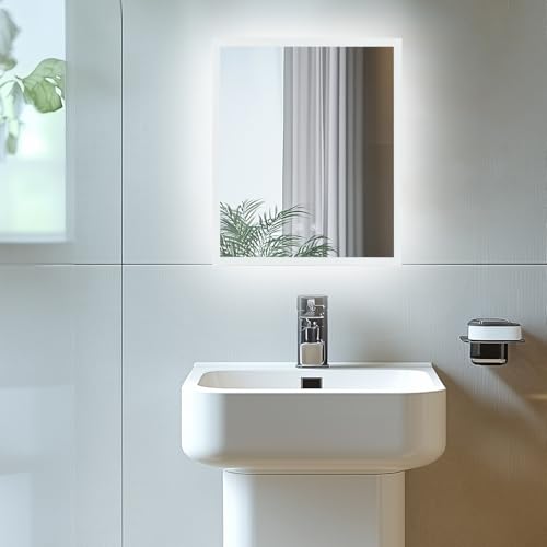 LUVODI Bathroom Mirror with LED Lights: 400x500mm Rectangular Illuminated Dimmable Wall Mounted Mirror with Anti-Fog 3 Lighting Modes Memory Function, Horizontal/Vertical