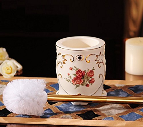Luxury Ceramic Toilet Brush Set with Modern Style Holder Strong Stain Removal Brush Ivory Color