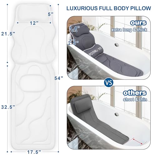 Luxury Full Body Bath Pillow for Bathtub – Extra Large & Waist Support Cushion, Exclusive Anti-Slip Coating Bathtub Mat for Ultimate Comfort & Safety – Great Spa Accessories Gifts (White)