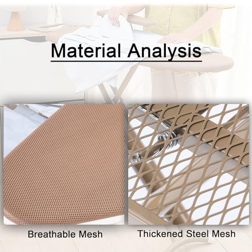 • 【Faster Ironing Experience】The ironing board offers a superior ironing experience with its full cotton cover, needle-punched cotton and thickened steel mesh. This combination of materials is designed to withstand high heat and steam faster and more efficient than others.