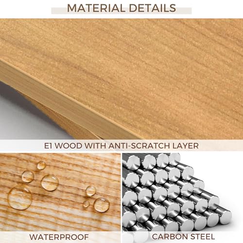 - Sturdy and Durable: The shelf is made of carbon steel and E1 grade wood planks with high particle density and with an extra layer of scratch protection.