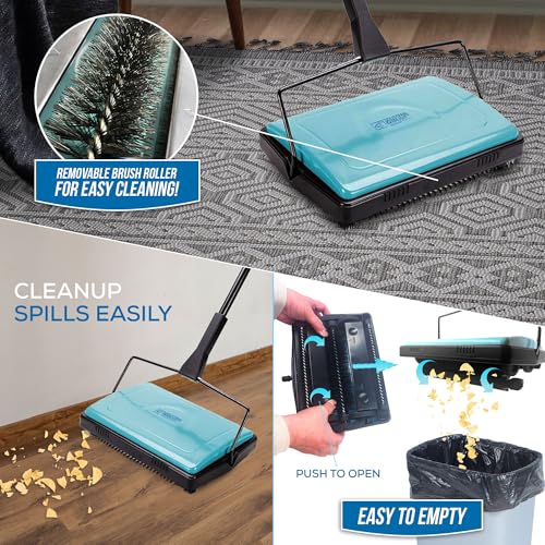 Manual Carpet Cleaner Carpet Sweeper with Detachable Cleaning Comb – Carpet Sweeper Manual for Efficient Cleaning for Carpets, Rugs, and Indoor Floors