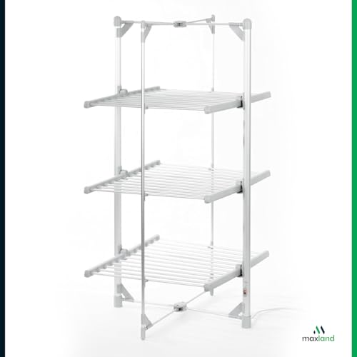 - This foldable 3 tier heated airer from Maxland, is a great low-cost way to dry your clothes. Perfect for apartments, houses with no outside space, or just for drying on wet and rainy days, this drying rack is designed to fold away and save space.