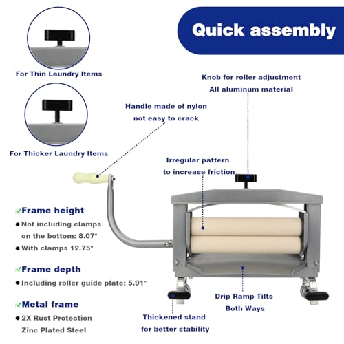 - Efficient Design: This clothes wringer features a compact and sturdy construction with a crank handle for easily extracting excess water from laundry.
