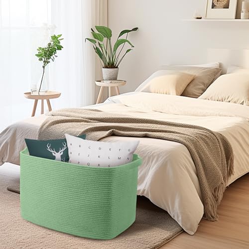 MEGASKET Large Green Baskets for Organizing, 23.6" x 17" x 12" Rectangle Blanket Holder Organizer, Kids Toy Storage Bins, Woven Rope Storage Basket, Green Home Decor Basket, Baby Nursery Storage