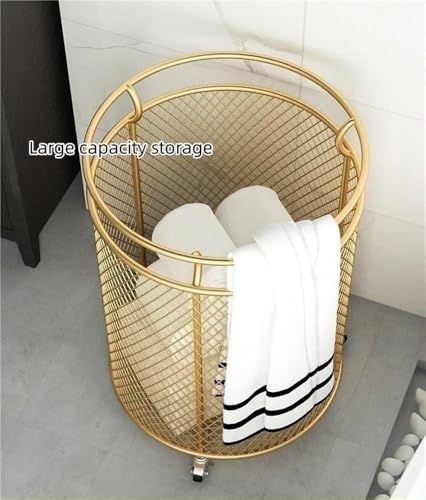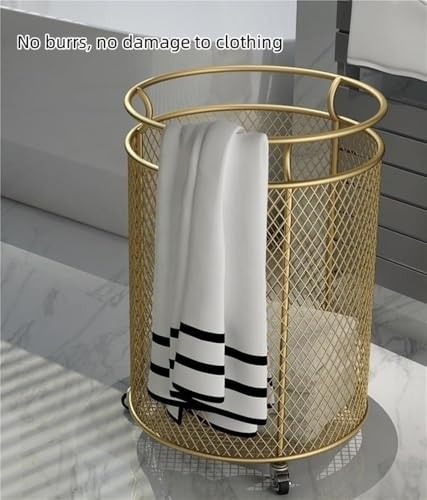 Metal Laundry Hamper with Wheels – Round Mesh Dirty Clothes Hamper for Bathroom, Laundry Room, Bedroom – Laundry Basket with Storage and Wheels(Color:Black) (White)